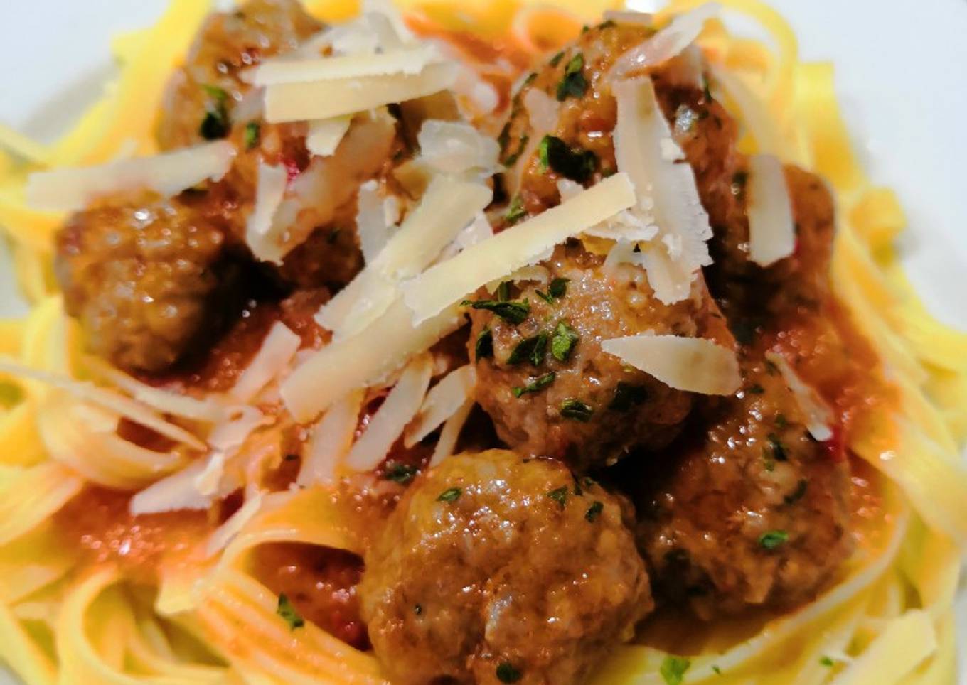 Fettuccine de maíz con albóndigas en salsa 🍝