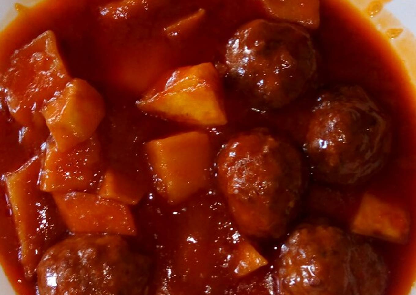 Albóndigas con patatas y salsa de tomate