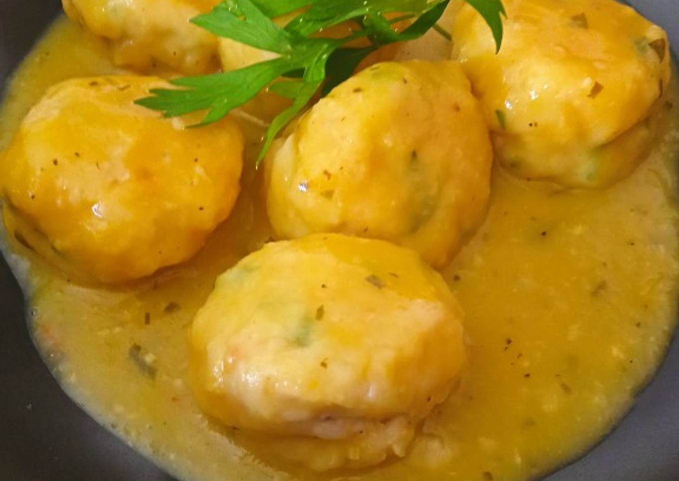 - Hacemos bolitas, con la masa. Las pasamos por harina. Freímos un poco y reservamos