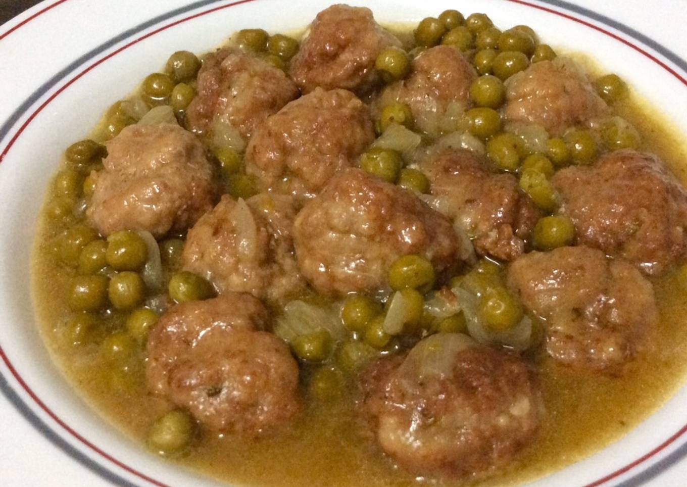 Cualquier carne con guisantes está deliciosa, y no podía ser menos con las albóndigas...quedan suaves y melosas.