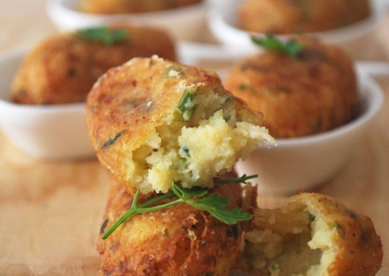 - Una vez fría la masa forma las albóndigas del tamaño deseado. Pasa por harina, sacude el exceso y fríe en abundante aceite de oliva hasta que estén doradas.