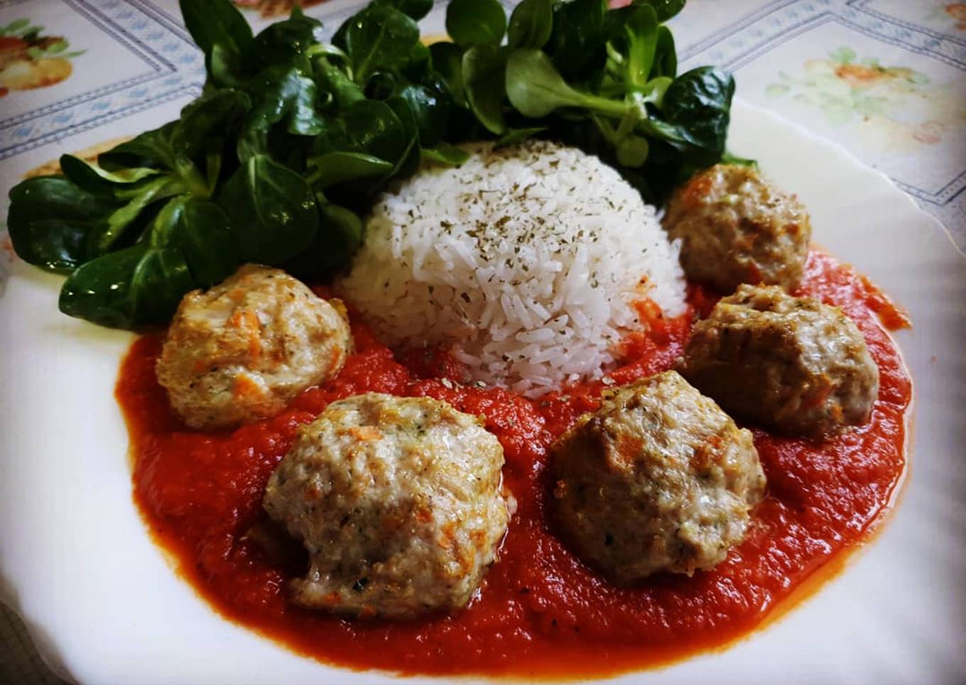 Mi marido es un loco de las albóndigas en tomate con arroz blanco, ahora estamos a dieta y moría por comerlas, así que mire de que manera podía darle el antojo... y aquí tenéis el resultado, espero que os guste.
