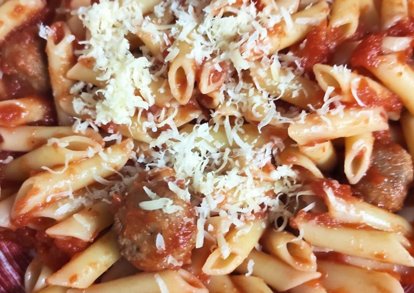 - Cuando el tomate se beba el líquido, le añadimos las albóndigas y la pasta.