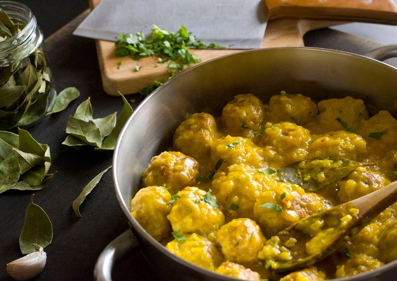 Ingredients and spices that need to be Make ready to make Albóndigas en salsa de azafrán: