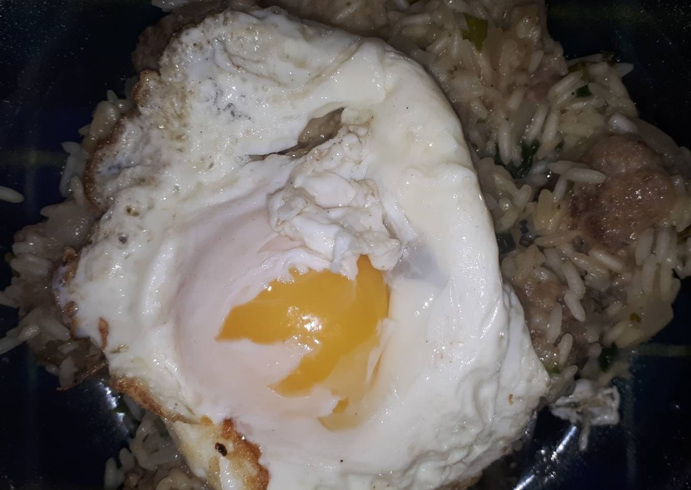 - Por último vamos a cocinar 3 huevos en un chorrito de aceite así quedan fritos por encima de la preparación